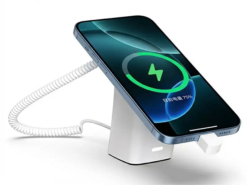 Protect and enhance your device display with our new security stands. A professional 2-in-1 solution that ensures continuous iPhone charging and active anti-theft protection.