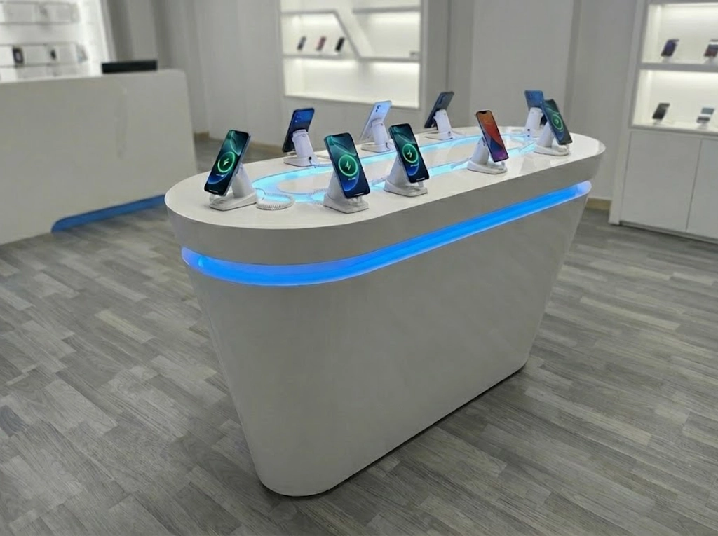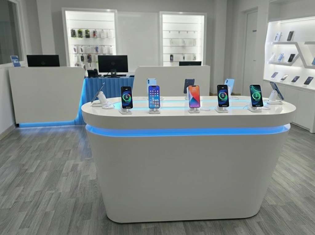 Its shape allows you to comfortably display up to 14 smartphones, ensuring the necessary space between each device for a neat presentation that invites customer interaction.