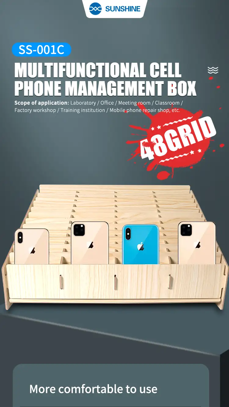 Thanks to the Sunshine SS-001C Mobile Phone Organizer, you can classify all phones in a very small space, making them instant to find. This 48-slot collection box is an essential tool both in the repair area, to clear the bench of devices on hold, and in reception, for quick consultation and job management.