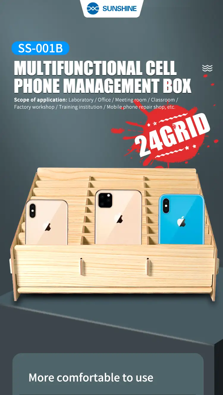 The Sunshine SS-001B is the ideal logistical solution for service centers requiring organized device management. This 24-compartment storage box is specifically designed to hold smartphones awaiting repair or ready for collection, ensuring that every device is easily identifiable and protected.