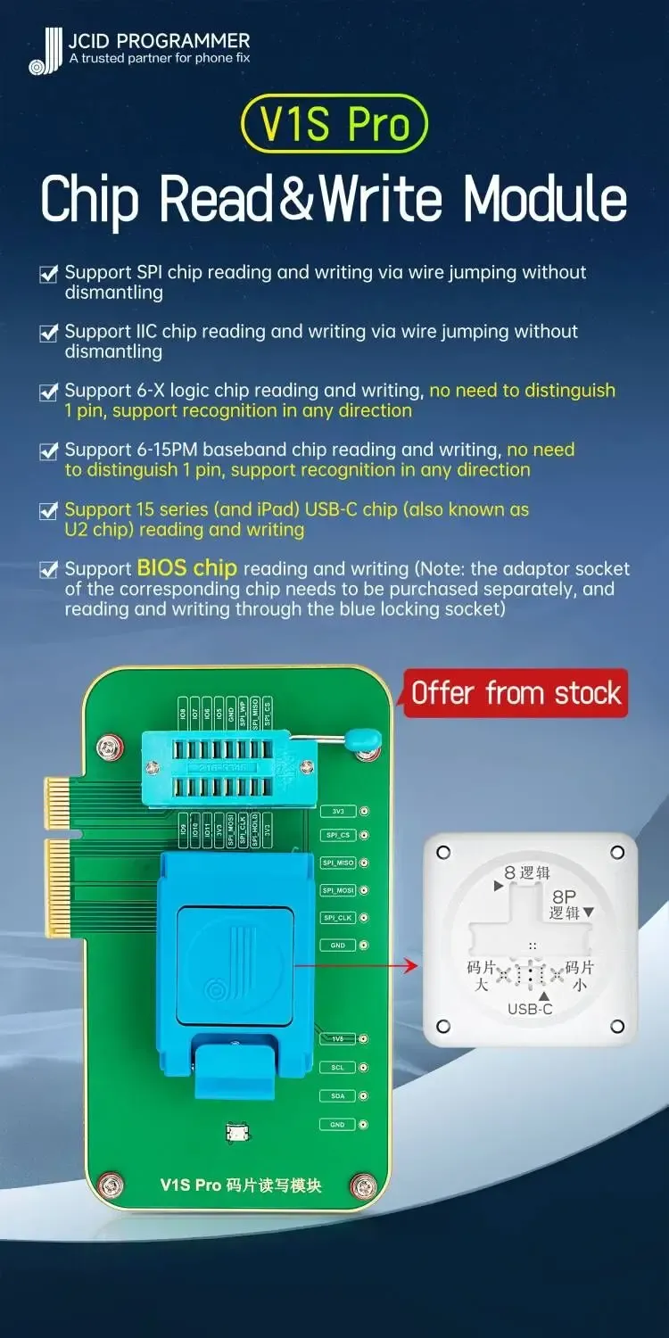 Supporta la lettura - scrittura del chip USB-C (o chip U2) della serie 15.