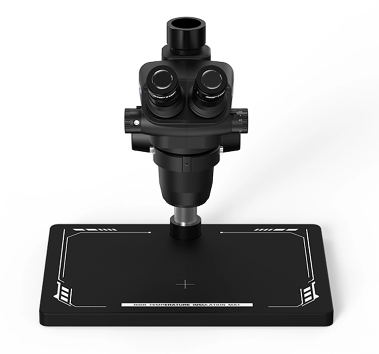 Grazie alla generosa distanza di lavoro e al sistema di zoom continuo, permette ai tecnici di manovrare agevolmente stazioni saldanti, pinzette e pistole ad aria calda direttamente sotto l'obiettivo. La porta trinoculare integrata è un vero valore aggiunto per i negozi: consente di collegare una telecamera per mostrare i dettagli della riparazione ai clienti su un monitor esterno, oppure per registrare interventi di microelettronica da condividere sui social media.