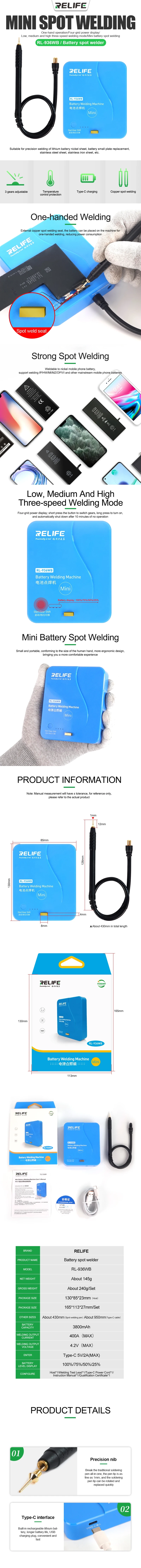 Relife RL-936WB - Saldatrice a Punti Portatile per Riparazione Batterie