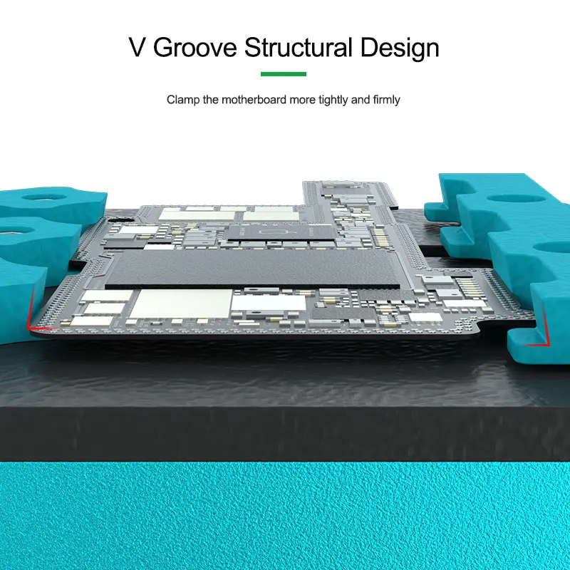 - Bloccaggio di Precisione: Morsetti a V mobili e scanalature progettate per abbracciare i circuiti senza schiacciare i condensatori limitrofi.