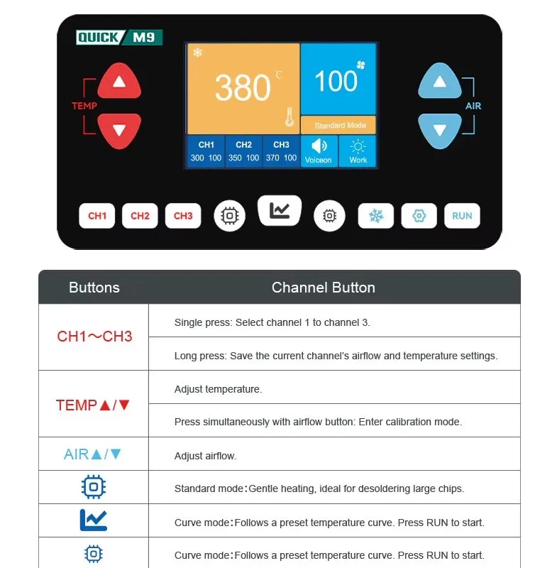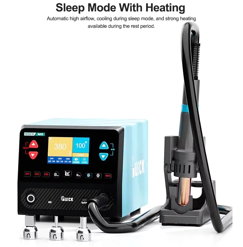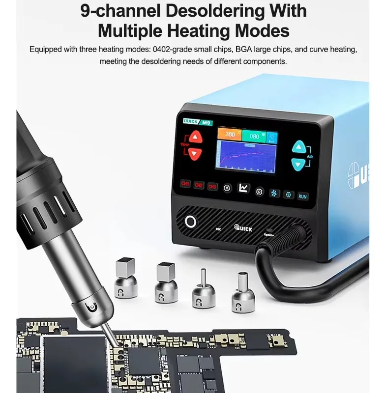 La QUICK M9 non è semplicemente una stazione ad aria calda; è un sistema di rework avanzato progettato per i laboratori che non possono scendere a compromessi su velocità, precisione e sicurezza dei componenti.