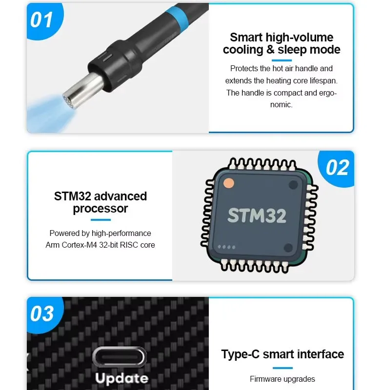 La sua natura "Smart" si traduce in una gestione del processo termico che minimizza l'errore umano, standardizza le riparazioni e garantisce la massima ripetibilità dei risultati, fattore critico per mantenere alti tassi di successo (yield rate) nelle riparazioni BGA e micro-SMD.