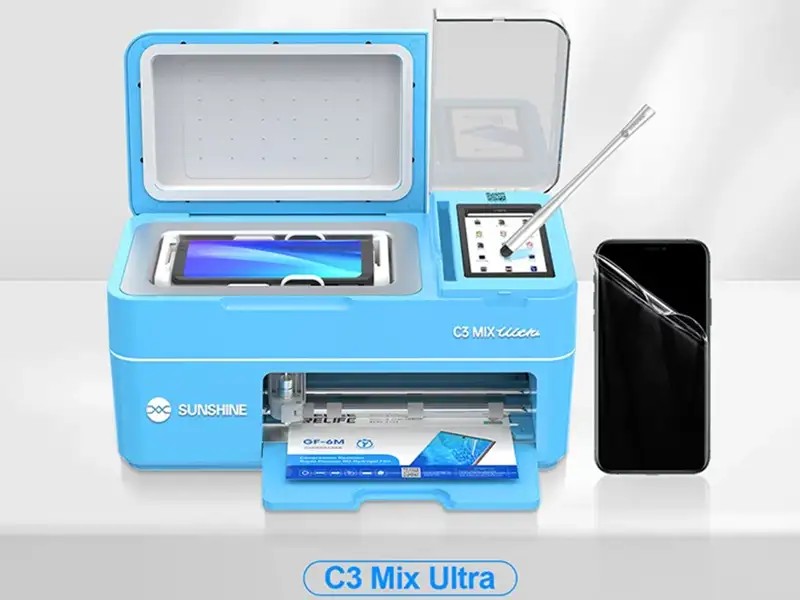 La Sunshine C3 Mix Ultra non è solo una macchina da taglio: è il tuo nuovo partner strategico per massimizzare i profitti dell'area accessori. Progettata per l'uso intensivo professionale, questa macchina intelligente ti permette di creare pellicole protettive (frontali e posteriori) per oltre 20.000 modelli di dispositivi, on-demand e in pochi secondi.