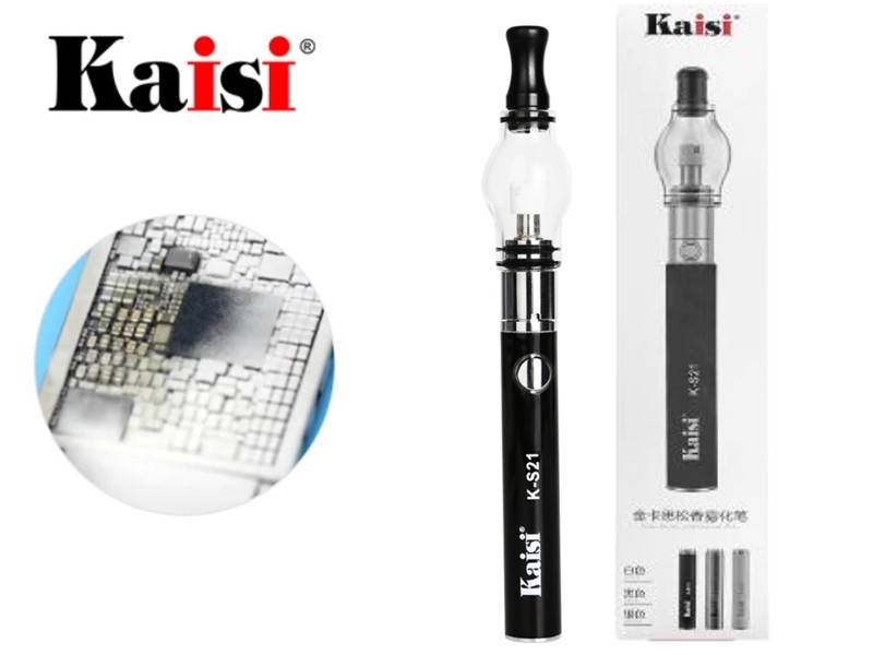 A Kaisi Rosin Pen é a ferramenta de diagnóstico indispensável para qualquer laboratório de reparação de smartphones e MacBooks. Este dispositivo permite identificar instantaneamente componentes em curto-circuito (condensadores, ICs, díodos), criando uma nuvem fina e uniforme de fumo de breu (colofónia) na superfície da placa principal.